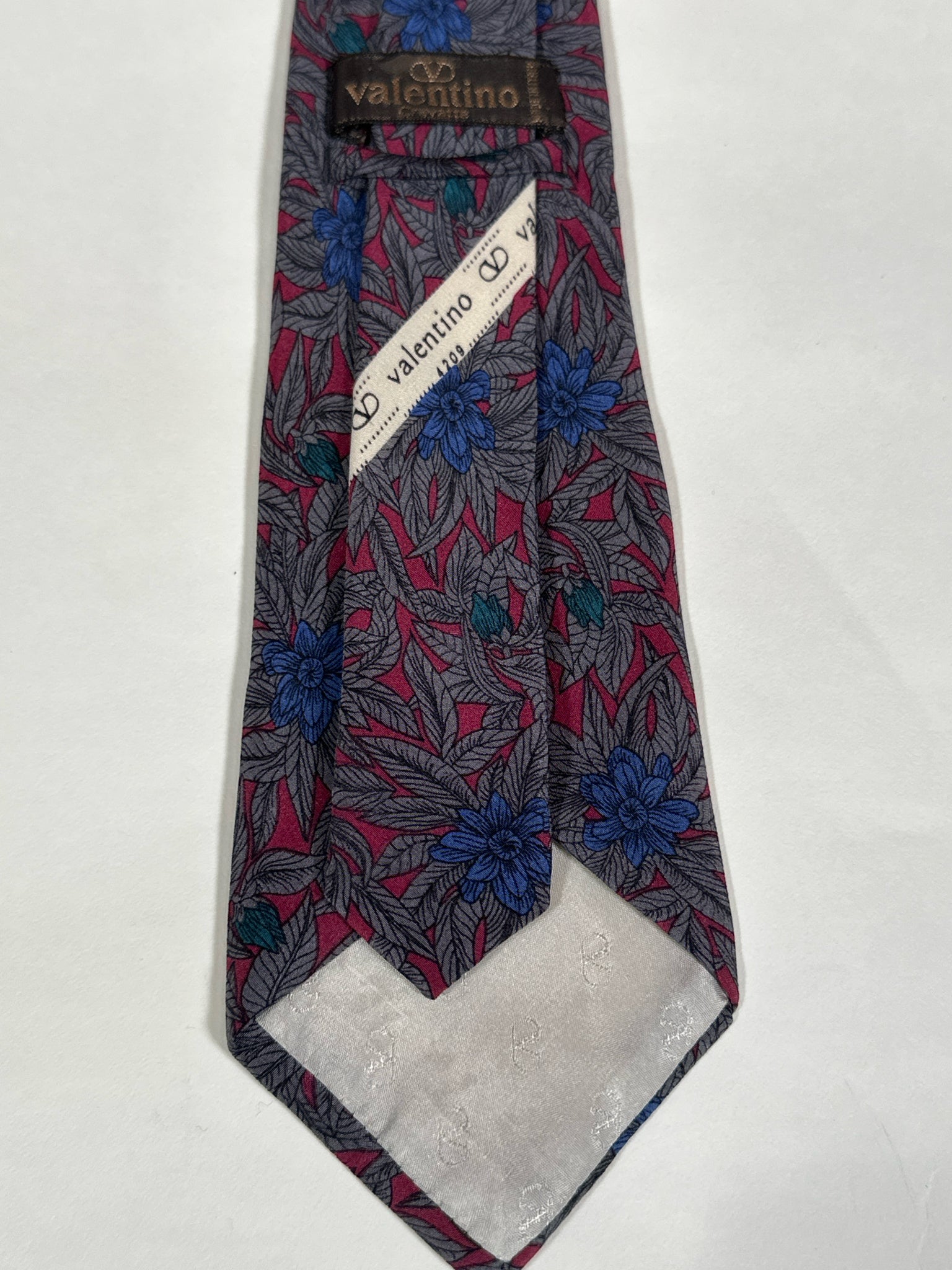 VALENTINO MULTI COLORS TIE GREY BLUE BURGUNDY FLORAL - MULTI COLORS is backordered and will ship as soon as it is back in stock.