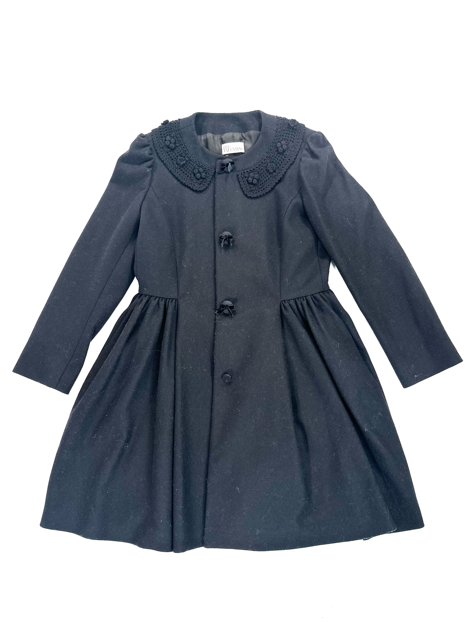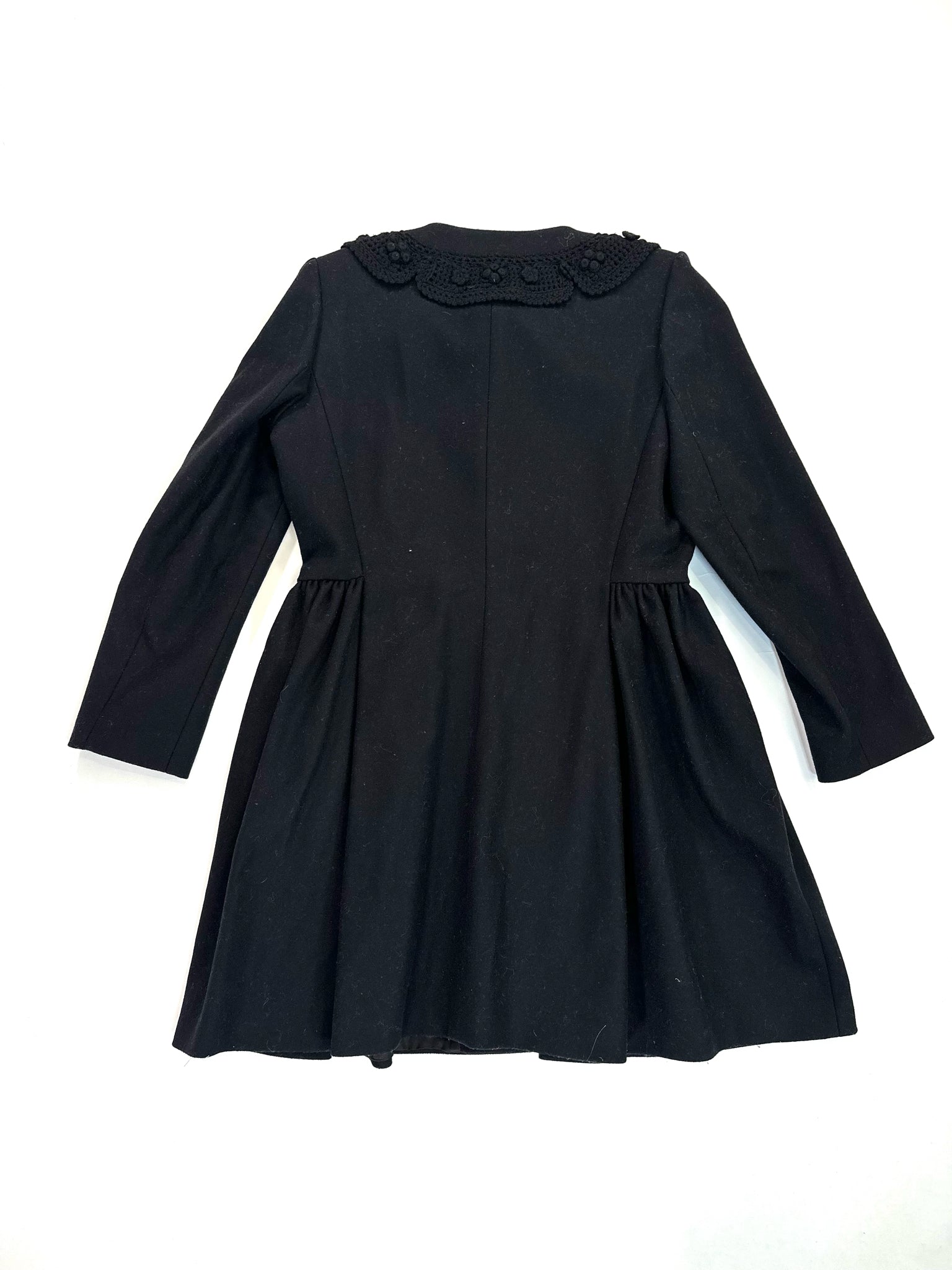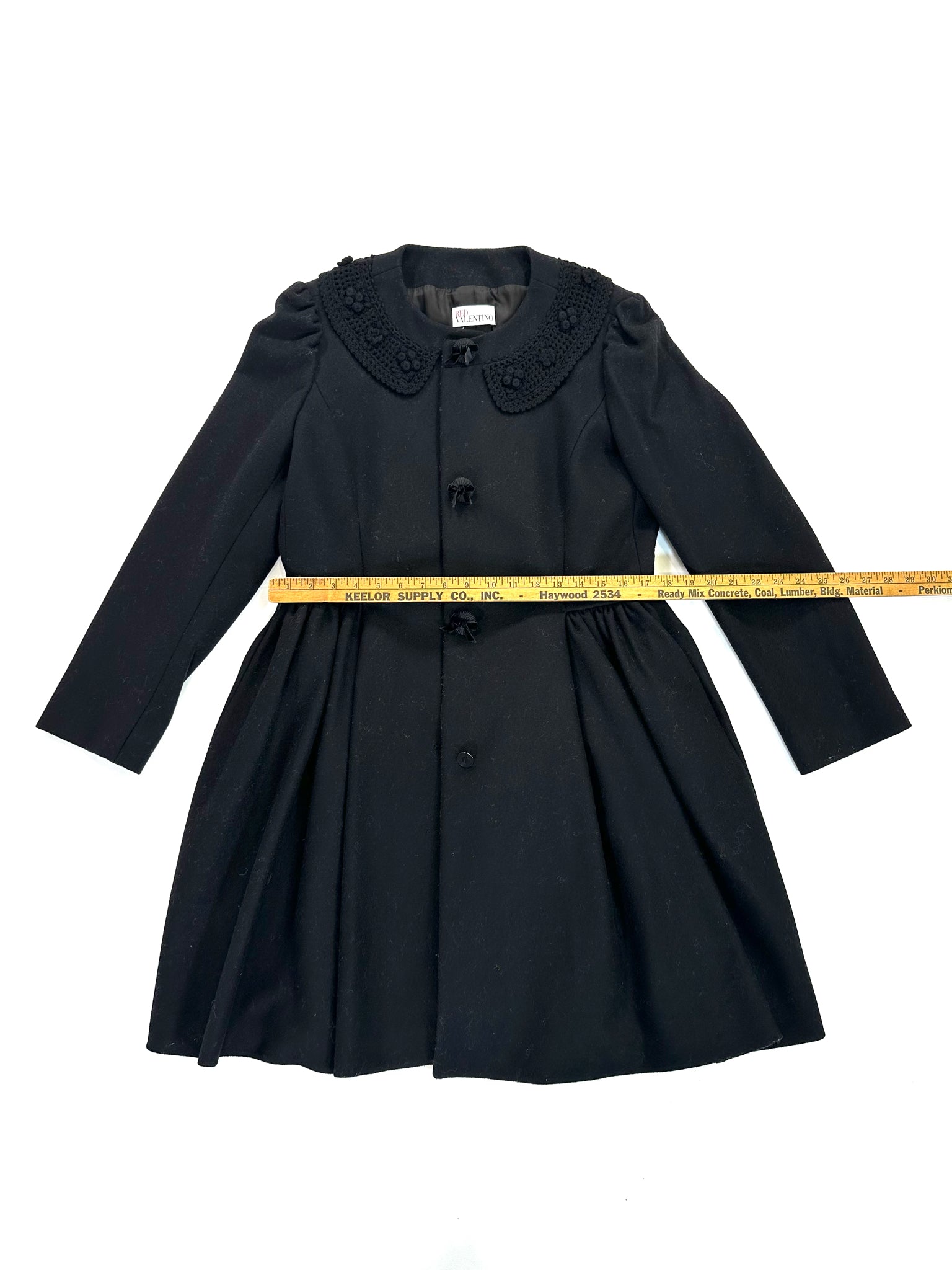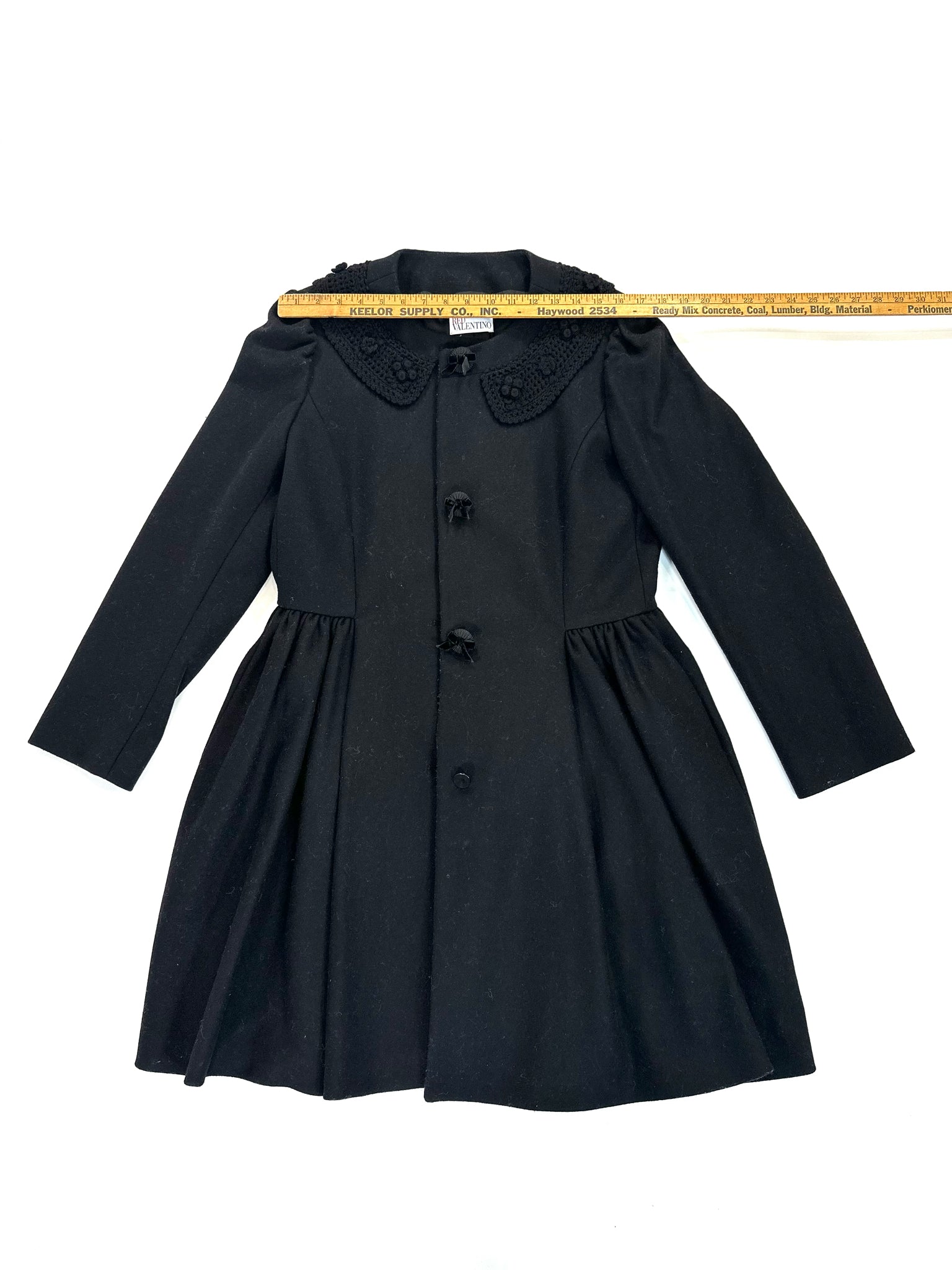 VALENTINO Size 6 BLACK COAT WOOL BLEND VELVET BOWS