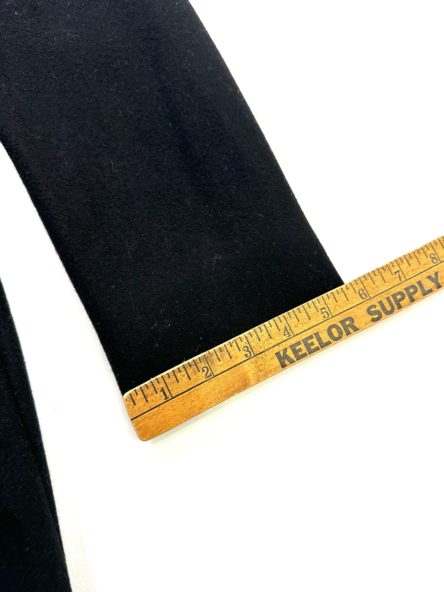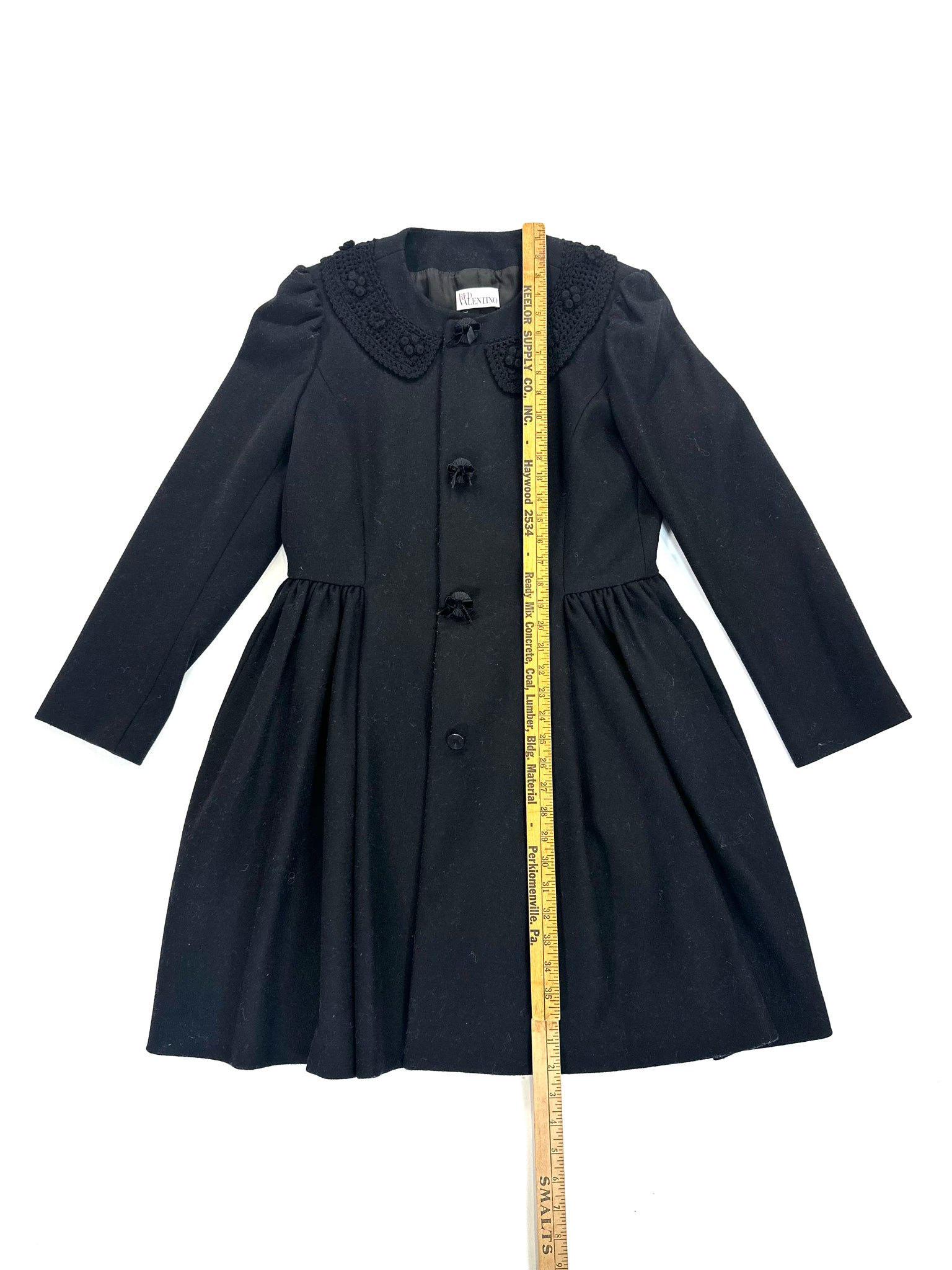 BLACK WOOL BLEND KNIT COLLAR VELVET BOWS (RED) GATHERED "AS IS" ONE BUTTON COVER IS MISSING
