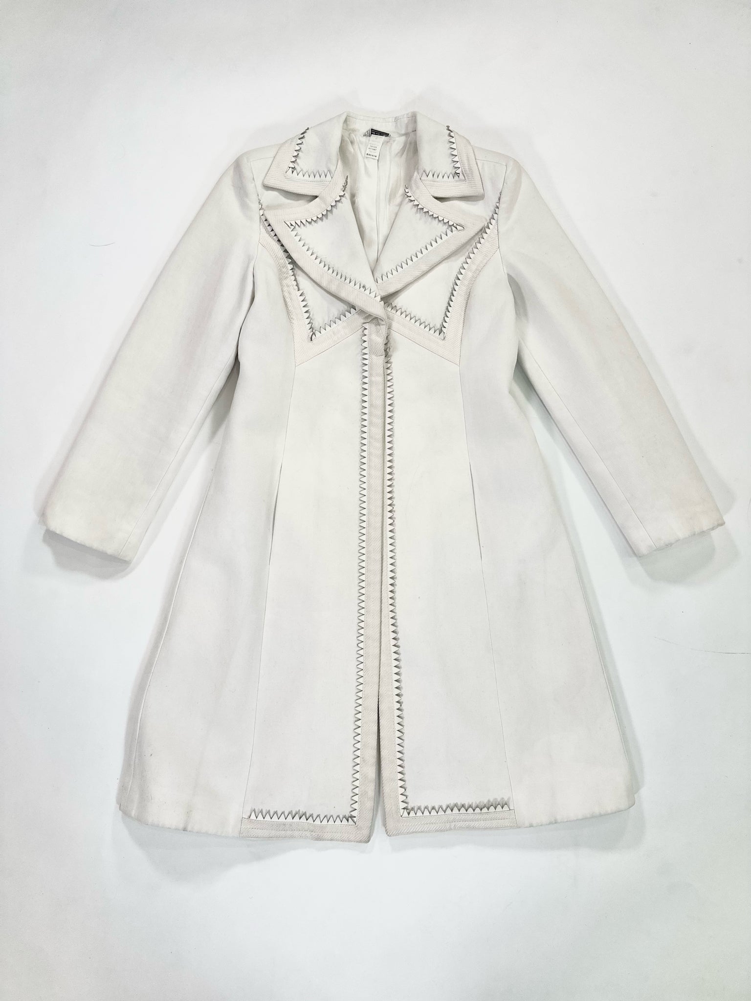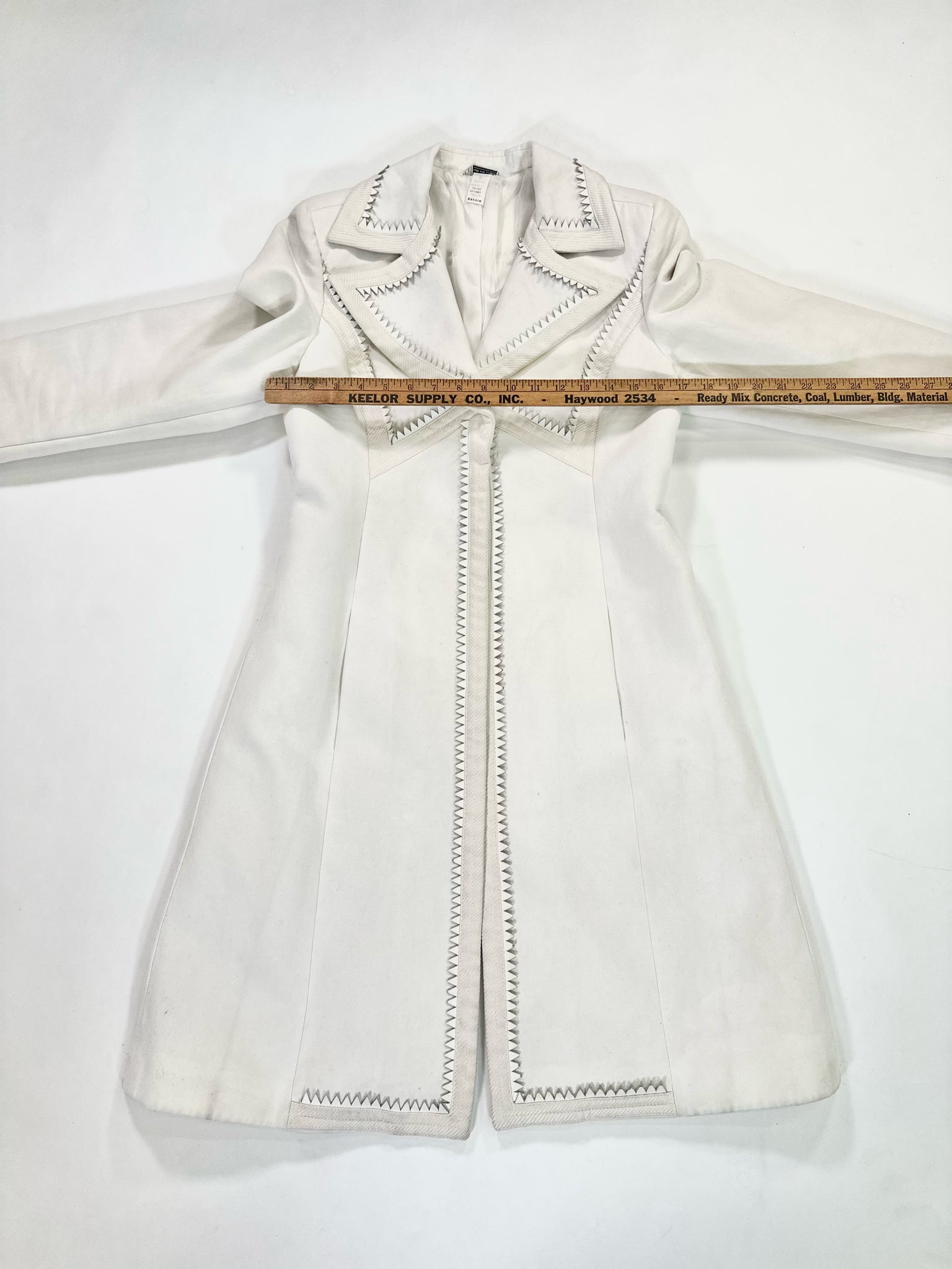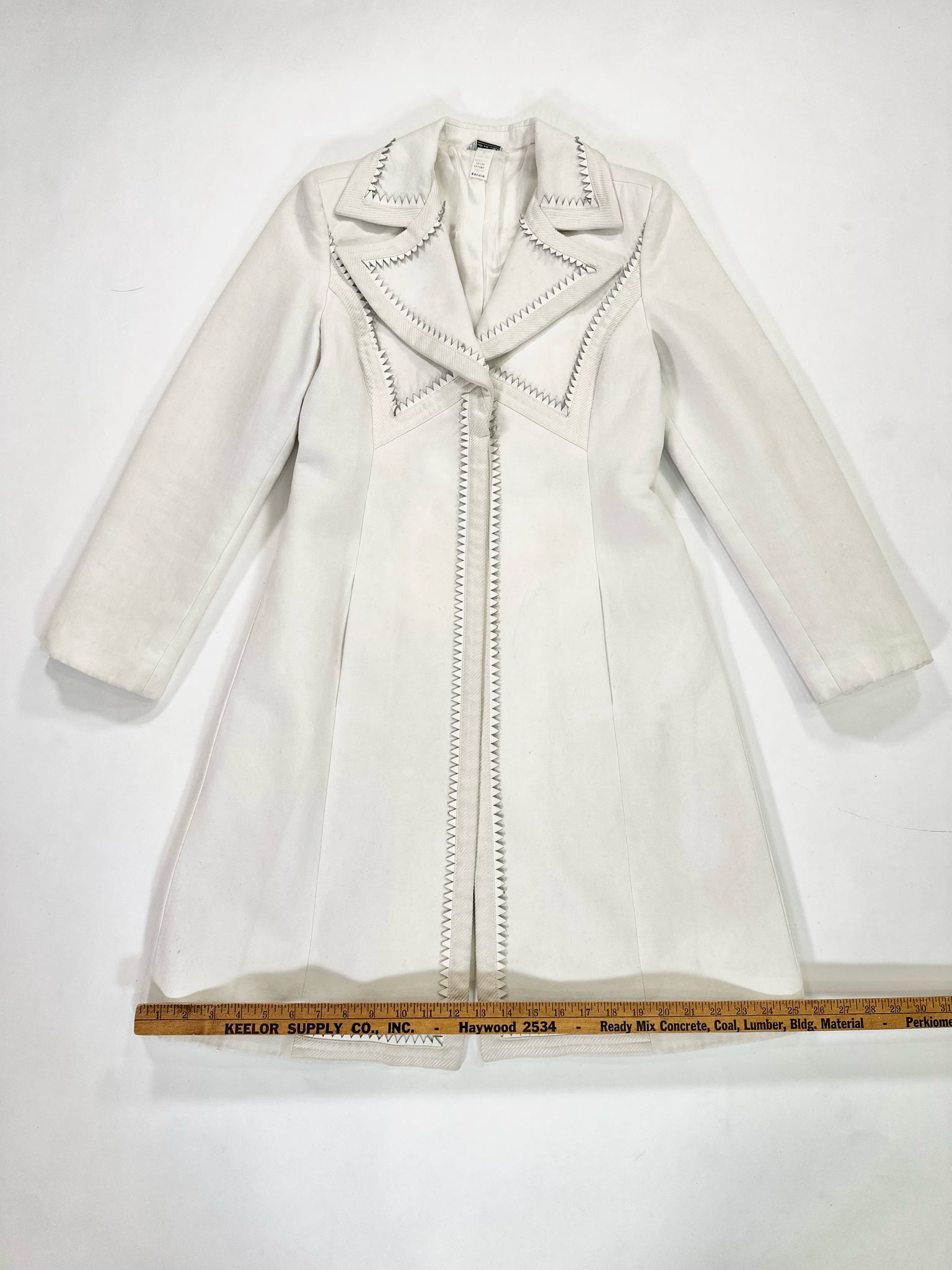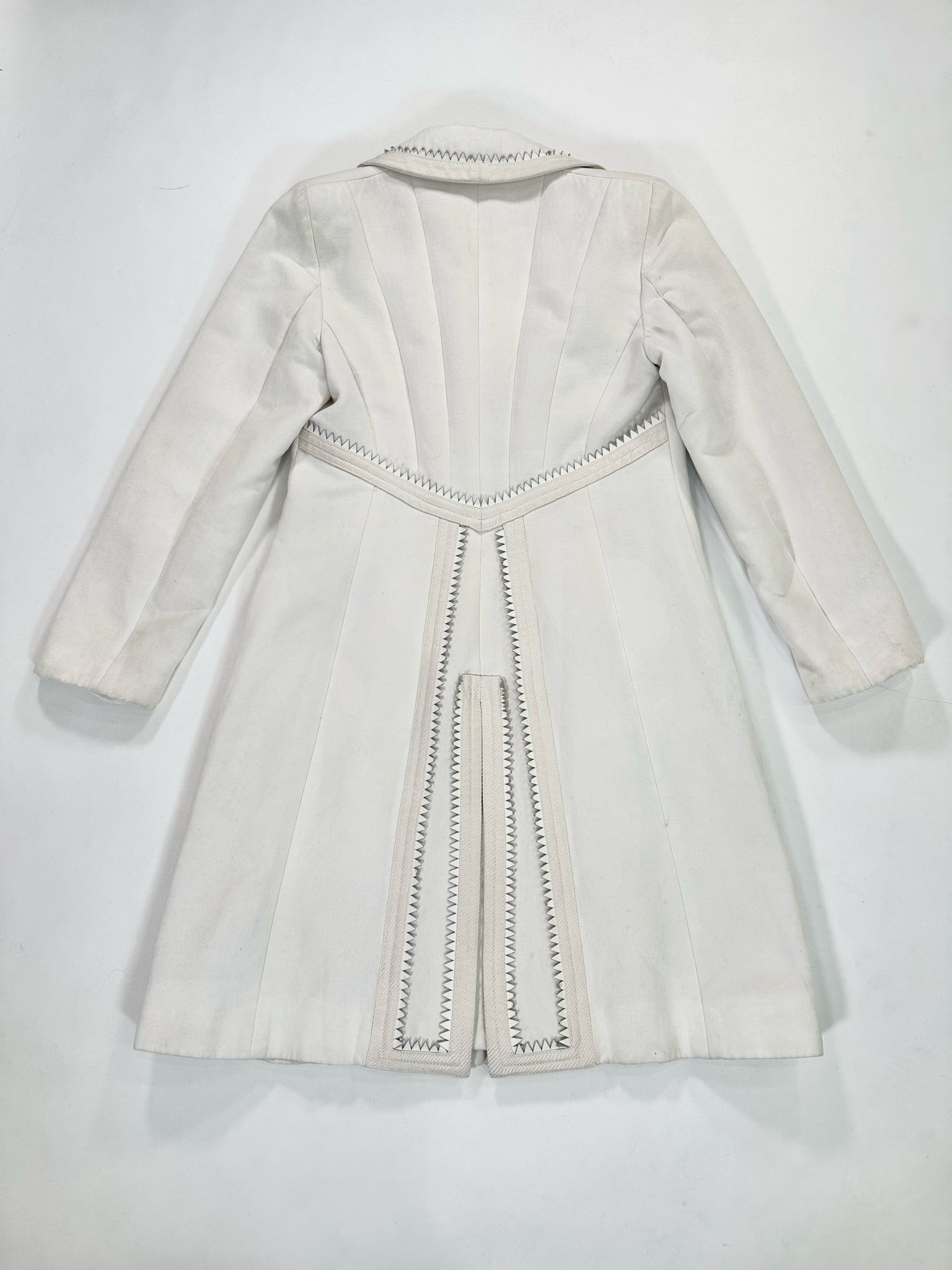 VERSACE Size S COAT PARCHMENT LONG SLEEVES COTTON BLEND LEATHER TRIM