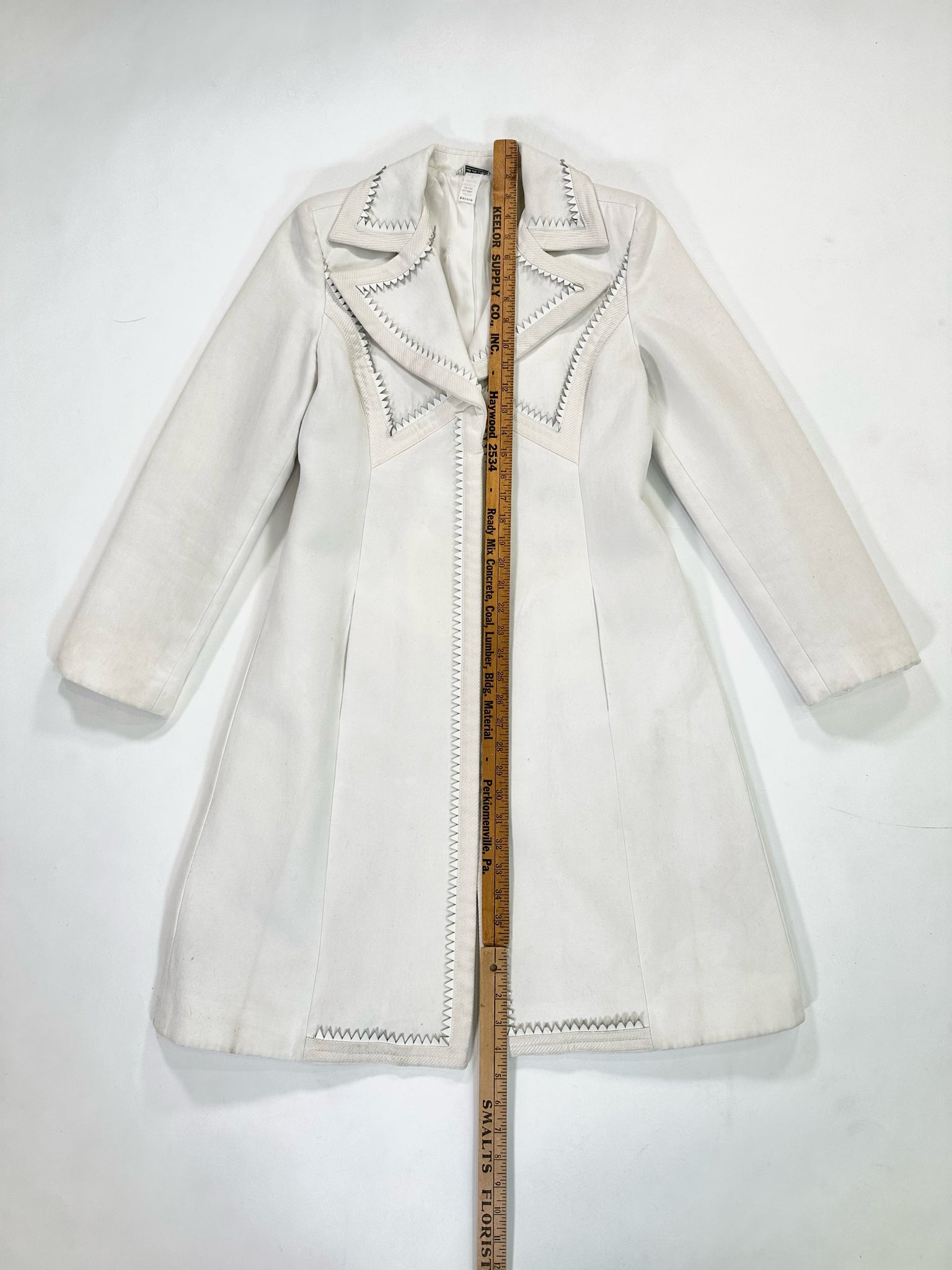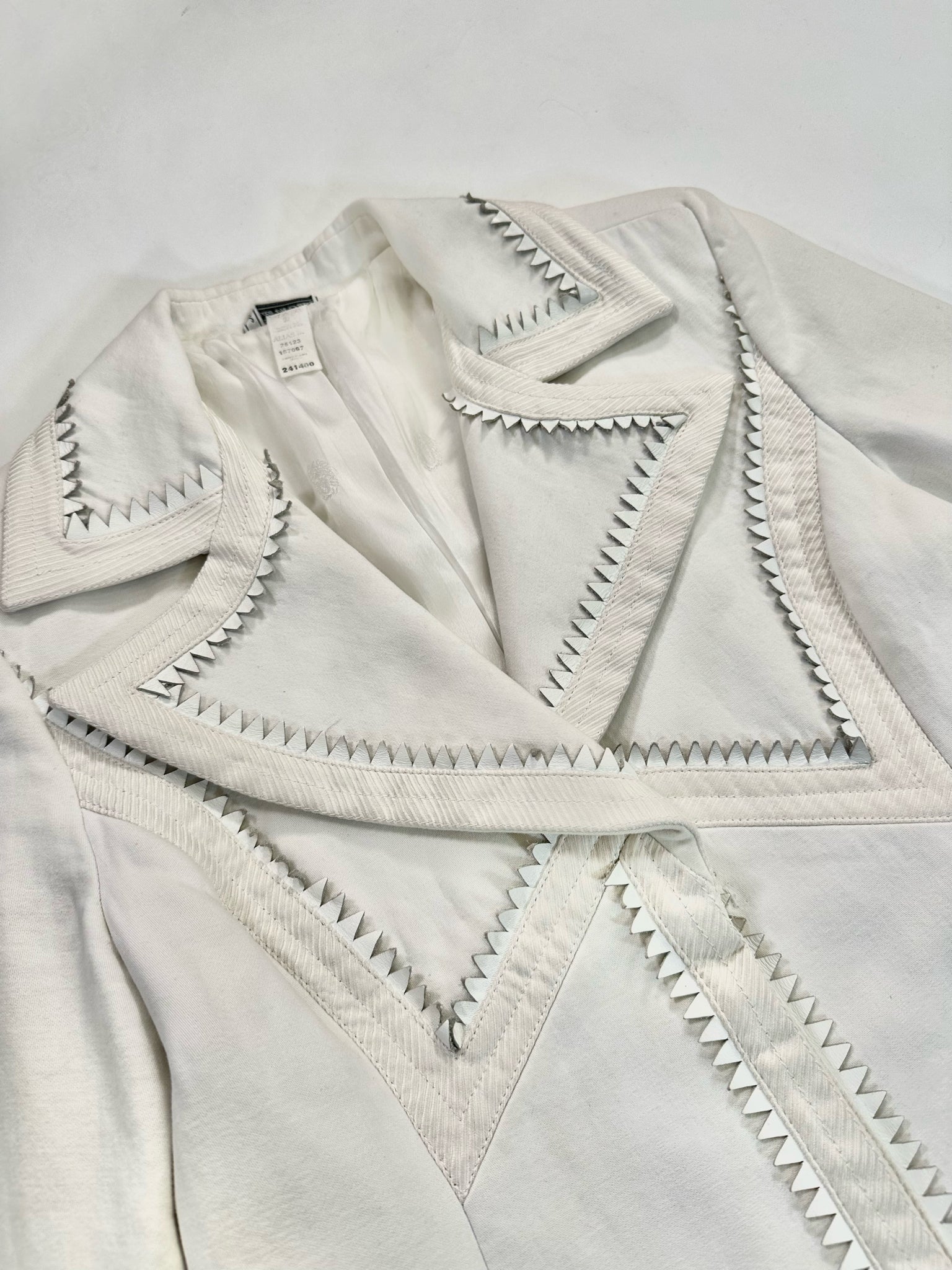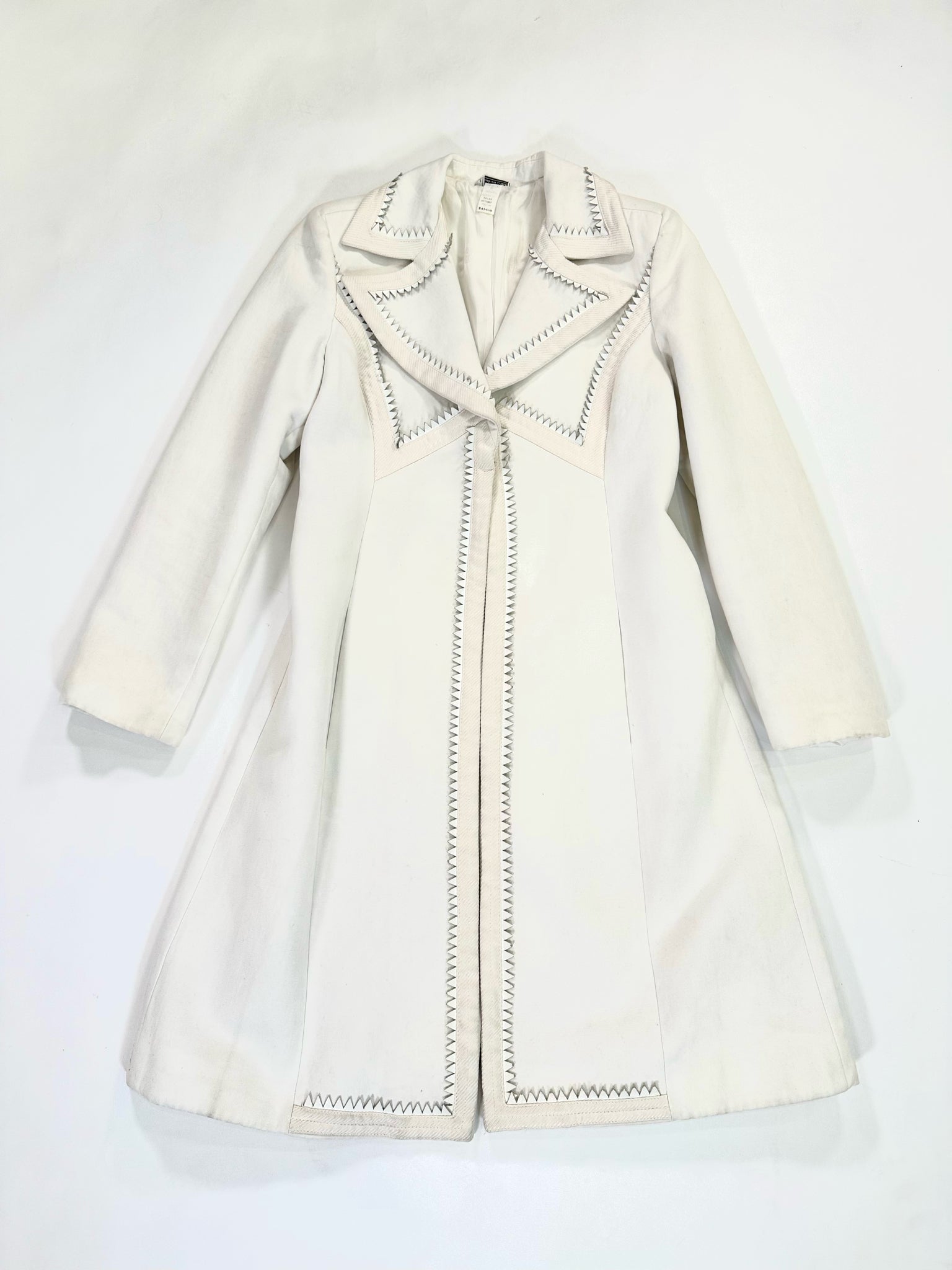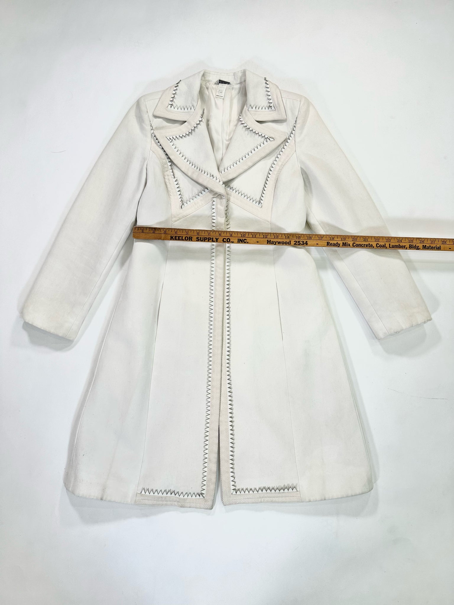 VERSACE Size S COAT PARCHMENT LONG SLEEVES COTTON BLEND LEATHER TRIM